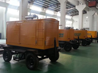 拖車車架采用槽梁焊接成框架結構,節點選擇合理、強度高、剛性好;同時裝有鋼板彈簧懸架結構;拖車采用高度可調節插銷式牽引架,適用于各種高度牽引車;采用圓形鋼管焊接直通式車軸,結構緊湊,安全可靠;車架四角設有機械式支撐裝置,配備慣性行車制動、駐車制動和脫離應急制動,確保機組在各種狀況下的安全;車架前端設有支撐輪,具備承受機組垂直載荷的功能的同時還具備導向功能;整車配備轉向和剎車指示燈,同時裝有尾燈標準插頭。