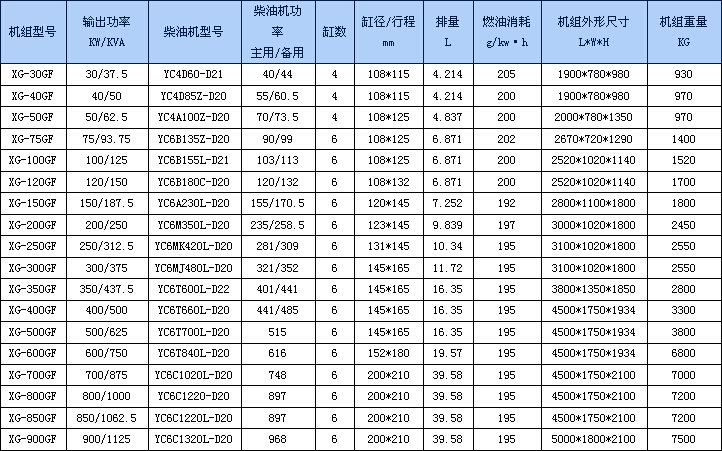二、玉柴柴油發電機組 機型特點: 1、發動機運行平穩,噪音抵 2、快捷、可靠的冷啟動性能 3、外行設計精致小巧 4、燃油消耗量小,運行費用低 5、各項性能指標達到GB/T13032-91規定的要求。 適配廣泛: 適用于各種客、貨船及漁船等作為常用電源或備用應急電源。三、80kW玉柴發電機組 機型特點: 1、采用玉柴生產的YC6108ZLD柴油機作動力。 2、具有結構緊湊、功率儲備大、運行穩定、調速性能好、排放低、低噪音等優點。 3、各項性能指標達到GB/T2820—1997規定的要求。 適配廣泛: 1、其中80GF1、80GT型機組所配套的發電機組是以德國技術生產的西門子發電機組。 2、其80GF型機組具有優良的靜態電壓調整性能,特別適用于對電壓穩定要求高的場所。 3、其80GF1-1型機組因具有優良的動態性能,特別適用于電機頻繁啟動的場所。 4、其80GT拖車電站適用于野外作業。 四、120/128kW玉柴柴油發電機組 機型特點: 1、采用玉柴生產的YC6112ZLD柴油機作動力。 2、具有結構緊湊、功率儲備大、運行穩定、調速性能好、燃油消耗低、排放低、噪音小等優點。 3、各項性能指標達到GB/T2820—1997規定的要求。 適配廣泛: 1、其120GF99-2型機組因具有優良的穩態電壓調整性能而特別適用于對電壓穩定要求較高的場所。 2、其120GF99-3型具有優良的動態性能,特別適用于電動機頻繁啟動的場所。 3、其120GT拖車電站適用于野外作業。 五、180/200kW玉柴柴油發電機組 機型特點: 1、采用玉柴生產的YC6M320D大功率柴油機作動力,選配無錫新時代產斯坦福電機或意大利進口電機馬卡地、迅高等 2、具有結構緊湊、操作方便、運行平穩、低油耗、低噪聲等優點。 3、各項性能指標達到GB/T2820—1997規定的要求。 適配廣泛:適用于工況企業、機關學校、郵電通訊、邊防營地等部門和單位作為常規電源或備用電源。 售后服務 1、維修人員在接到維修電話后3個小時內趕到現場,提供24小時服務,提供不間斷的服務直到結束。提供足夠的備件以適應建設方維修需求。 2、供貨方對合同中規定的整套設備提供12個月或累計運行1000小時的質保期(時間以先到為準),時間從綜合驗收通過、建設方接受并使用之日算起。 3、在質保期內對所有發電機組設備進行常規檢查、調整和潤滑。在質保期內,每年兩次現場指導用戶進行產品維護、保養。在貨物的設計使用壽命周期內,保證使用方更換到原廠同質的零部件,確保其的正常使用。 4、質保期內供貨方自行付費,負責修理和替換任何由于設備自身的質量問題造成的損壞及故障。 5、在缺陷保修結束時,由專業工程師對設備進行另一次測試,任何故障由供貨方自費解決并取得建設方的同意。質保期結束后,仍負責對設備提供終身維修服務,只收取配件費。玉柴產品以高可靠、低油耗、低排放、低噪音、適配性強的特點和完善便捷的服務。 特點:體積小、重量輕、強度高、散熱快、溫升低、自恒壓等符合陸用、船用 機組型號:40GFB 輸出功率(KW/KVA):40/50 柴油機型號:YC4D60-D21 柴油機功率(主用/備用):40/44 缸數:4 缸徑* 行程(mm):108/115 排量:4.214 機油容量:11-13 燃油耗:205 壓縮比:16.5:1 機組外形尺寸:1900*780*980 機組重量:800 發電機組推薦使用上??破?、江蘇星光、馬拉松、西門子等. 維修服務:用戶在使用中如出現產品任何故障,將隨時派員到現場服務,公司憑經銷公司或用戶單位的維修報告及產品證明書,本省24小時安排落實到位,外省36小時以內安排落實到位,三包期為壹年或運行1000小時(以先到為準),終身服務。本公司在三十多個城市設立62多個技術服務部. 吉林省雙同發電設備有限公司于2006年8月成立,位于吉林省長春市二道區正茂生產資料市場22棟12號。星光發電機吉林省分公司經營的品牌柴油發電機組有:康明斯、沃爾沃、道依茨、大宇、里卡多、奔馳、玉柴、濰柴華豐、濟柴190系列、帕金斯等柴油發電機組。